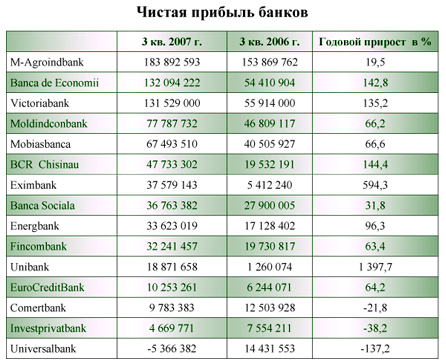 Похоже, что акционеры банков устали ждать и каждый год вкладывать в развитие. Наверное, они считают, что на сегодня их учреждения достигли максимальной отдачи. Возможно, это так. Но есть и такие банки, у кого прибыль несоизмеримо выше их успехов – к примеру, у Unibank годовой прирост 1,4 тыс.% (17 млн. леев).