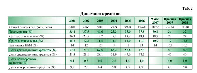 Теперь о цене кредитов. Я не разделяю мнения, что этот важнейший для экономики параметр зависит только и только от уровня инфляции, особенно в условиях монополизма банковской системы в сфере инвестиций, на рынке заёмных средств Молдовы. Данные таб. 2 показывают, что процентная ставка по кредитам имела тенденцию к снижению и тогда, когда инфляция была высокой.