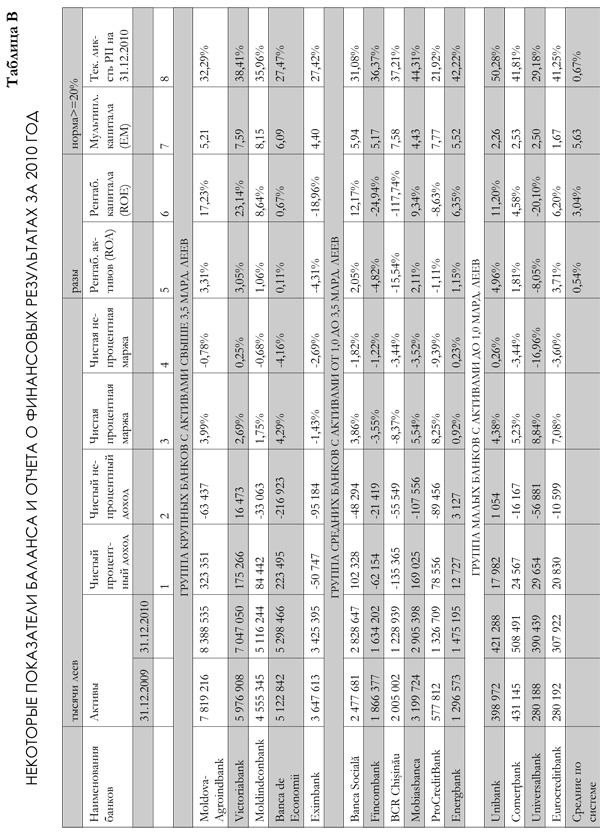 Возвращаясь к рассмотрению двух верхних строк таблицы А, мы видим, что удельный вес неблагоприятных кредитов в активах CNF/A у Victoriabank меньше, чем у Мoldova-Аgroindbank. Все приведенные сравнения объясняют первое место Victoriabank.