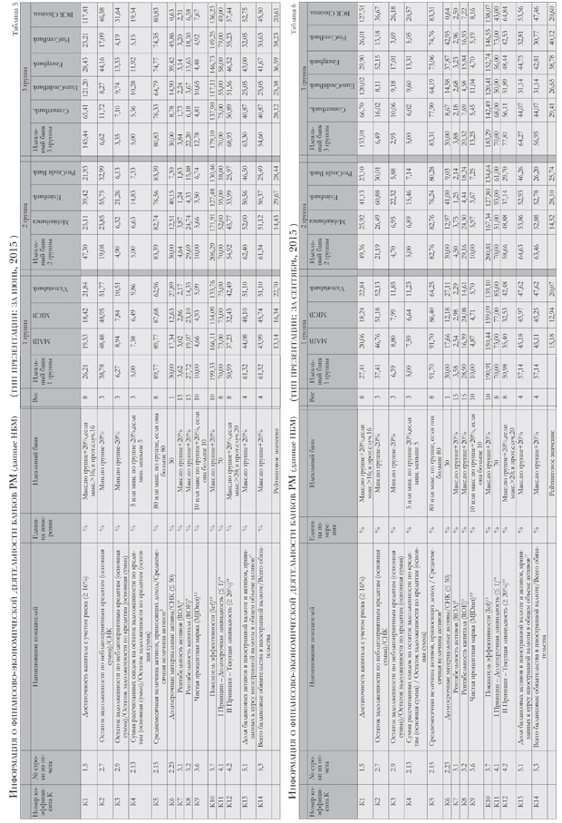 Таким образом, мы получили три группы банков (таблица 1 и таблица 2) для II и III кварталов, которые задействовали для расчета рейтингов.