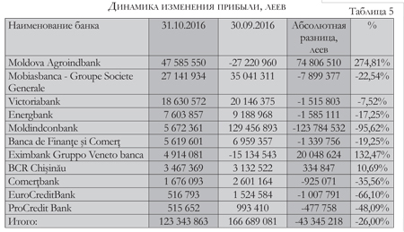 Незначительное уменьшение прибыли банка в октябре (минус 1,5 млн. леев) позволило ему остаться на третьем месте в системе по этому показателю с результатом 18,6 млн. леев. Отправной точкой результата месяца стал рост расходов, связанных с резервами и возобновляемыми резервами (+5,5 млн. леев). Рост доходов от валютных операций (+1,9 млн. леев), уменьшение расходов на выплату процентов (минус 1,5 млн. леев) и административных расходов (минус 1,6 млн. леев) позволили нивелировать влияние роста расходов на резервы.