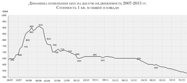 После длительного периода стабилизации цен в 2011-2012 гг. с осени 2013 г. продолжилось снижение. В 2013-2015 гг., цены снижались примерно на 7% ежегодно. В конце 2015 г. индекс стоимости составил 535 евро за квадратный метр общей площади по результатам фактических продаж.
