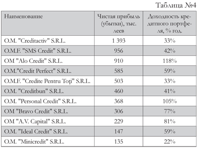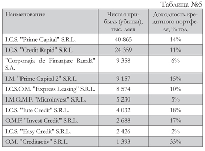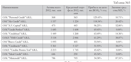 По данным Национального банка Молдовы (НБМ), рентабельность активов в банковской системе в 2012 г. составила 1,1%. Рентабельность активов МФО за этот же период времени приближается к 4,9%. Таким образом, МФО, находясь в более жестких конкурентных условиях, не имея доступа к дешевым ресурсам в виде депозитов от населения, в четыре раза эффективнее осваивают рынок кредитования.