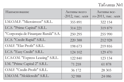 Редакция журнала Б&Ф продолжает наблюдать за развитием на рынке капиталов РМ сегмента микрофинансирования. Цель такого наблюдения прежняя: понять тенденции развития микрофинансовых организаций (МФО). Сделать это только лишь на основании небогатой информации, предоставляемой Национальной комиссии по финансовом рынку (НКФР) в виде обобщенной финансовой отчетности, непросто. Эксперты Б&Ф сравнивают результаты деятельности МФО за 2012 г., осознанно соизмеряя их с аналогичными показателями банков. Это тем более интересно, потому что МФО можно представить в виде кредитного отдела банка, работающего на передовой рыночной экономики в условиях чрезмерно высокого риска кредитования.