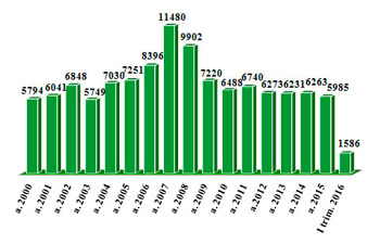 Предприятия, зарегистрированные в 2000-2016 гг.