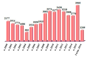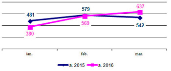 Эволюция предприятий, зарегистрированных в первом квартале 2015-2016 гг.