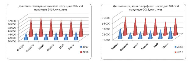 Итоги деятельности банка за первое полугодие 2018 г. в сравнении с аналогичным периодом 2017 г. показали значительное наращивание кредитного и депозитного портфелей. Остатки на ссудных счетах выросли на 183,7 млн. леев. Основное внимание уделялось кредитованию в национальной валюте (+169,9 млн. леев). Почти на 42 млн. в эквиваленте в леях увеличивается портфель в евро. Остатки по кредитам в долларах США снижаются на 28,2 млн. в эквиваленте в леях. Рост портфеля происходит в большей степени за счет кредитования физических лиц (+104,5 млн. леев). Остатки по ссудам экономических агентов увеличиваются на 79,2 млн. леев.