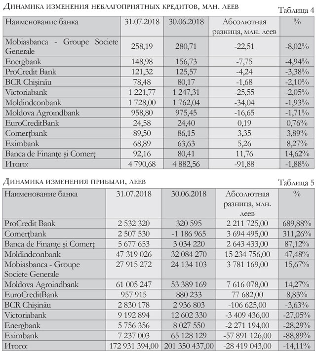 В таких довольно благоприятных условиях молдавские банки показывают летом 2018 г. довольно хорошие стабильные результаты.