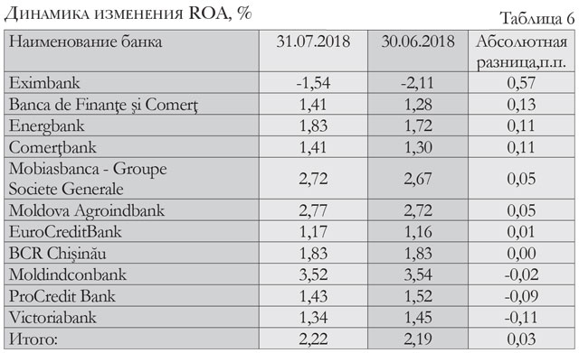 Подобная картина вырисовывается и с рентабельностью активов (ROA): в июне - 2,19%, в июле – на 0,03 п.п. выше.